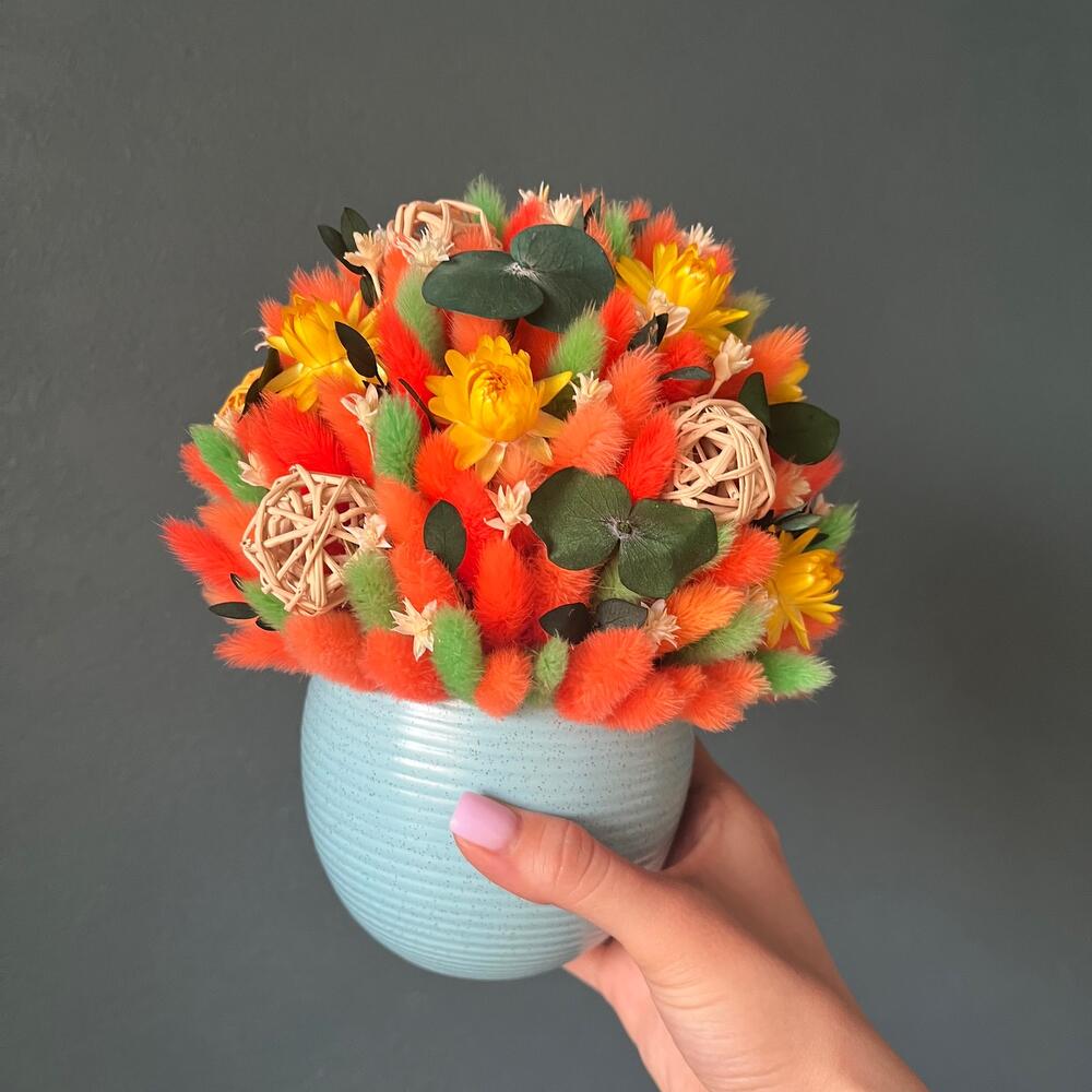 Весенняя композиция из сухоцветов в кашпо