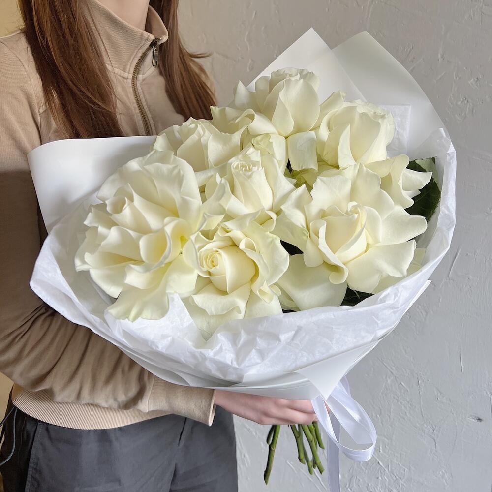 Лента атласная – 2 шт.Упаковка дизайнерская – 2 шт.Французская роза – 7 шт.Упаковка тишью – 2 шт.