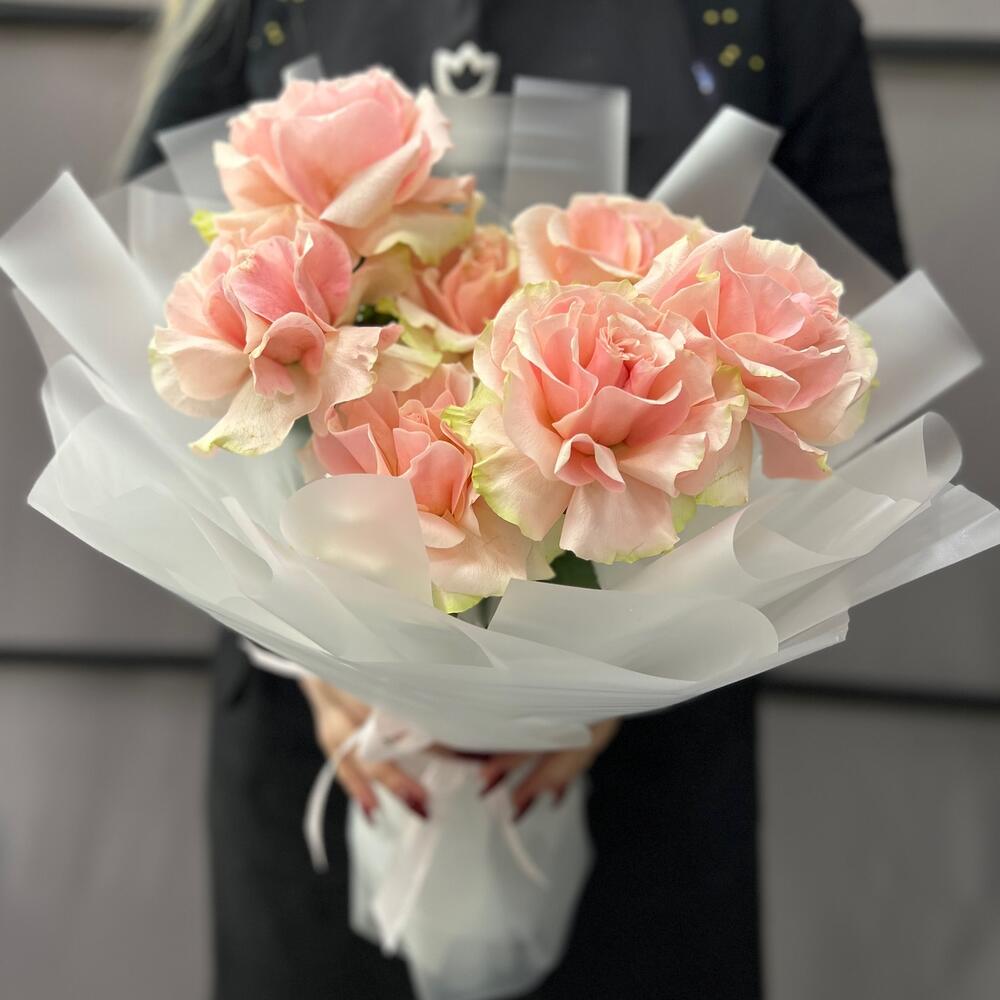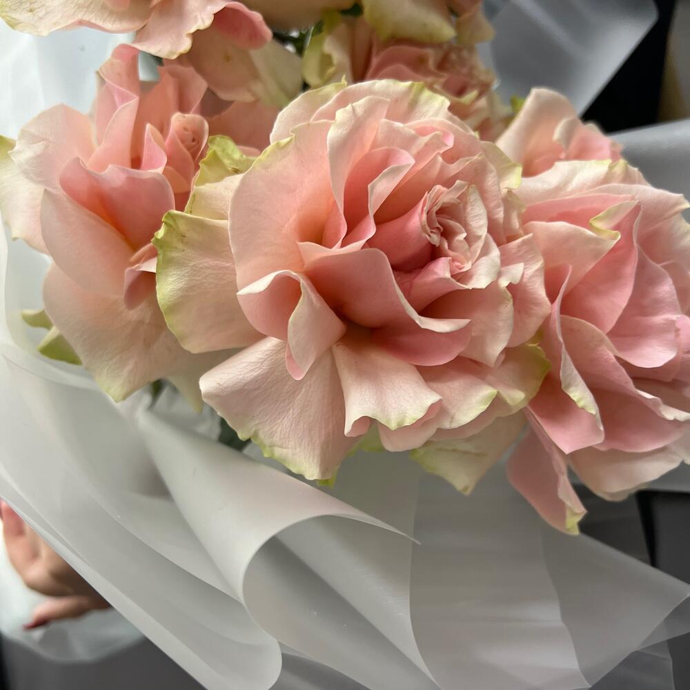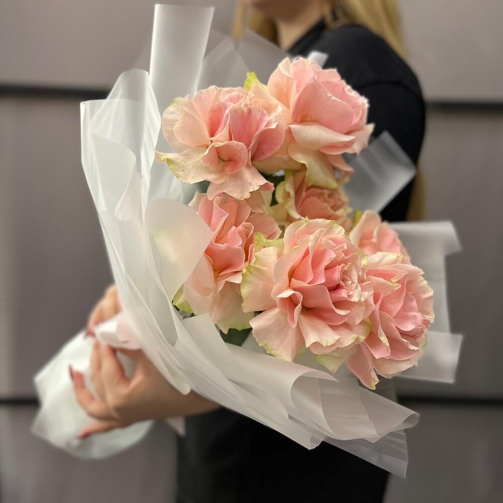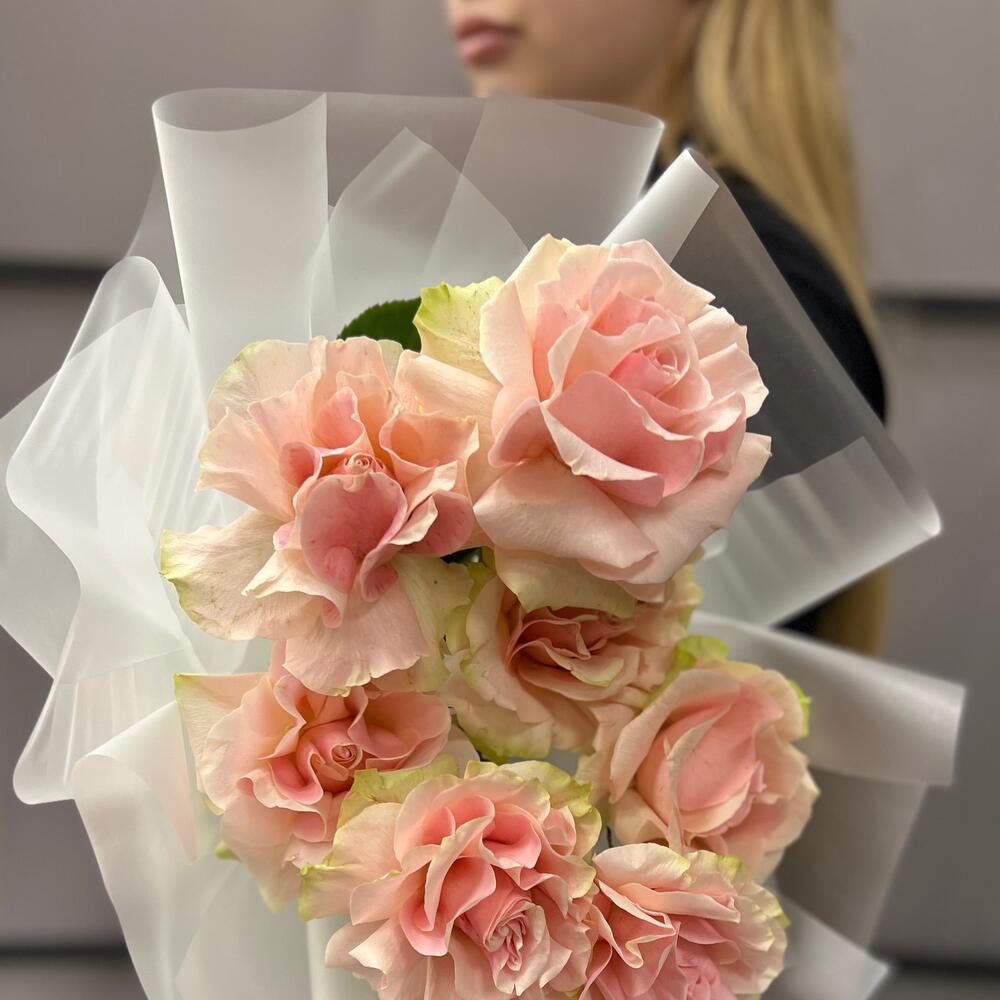 Французская роза – 7 шт.Пленка матовая – 9 шт.Лента атласная – 2 шт.